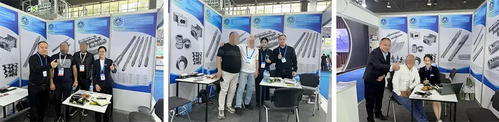 Van 21 tot 23 september 2025 presenteerde Zhoushan Nanhaiya Plastic Machinery Co., Ltd. zijn verkleinde schroef- en cilindermodellen op zijn stand. Met hun toonaangevende slijtvaste technologie en op maat gemaakte oplossingen werden de producten een hoogtepunt van de tentoonstelling en trokken ze talloze kopers aan uit Centraal-Aziatische landen zoals Oezbekistan en Kazachstan.